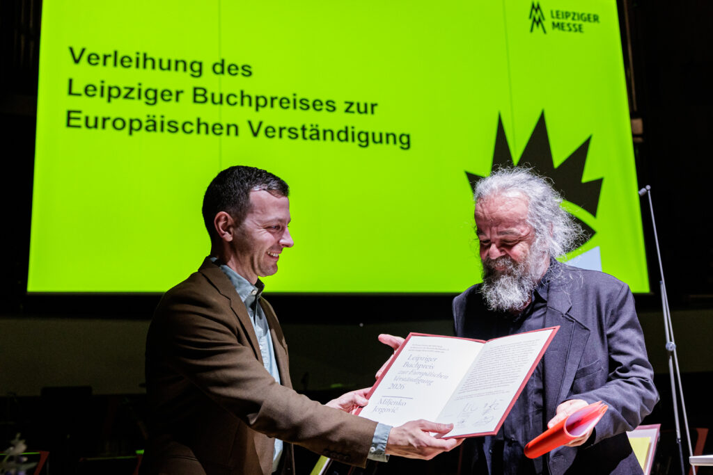 Der Schriftsteller Miljenko Jergović wurde am 18. März 2026 im Rahmen der Eröffnungsfeier der Leipziger Buchmesse im Gewandhaus mit dem Leipziger Buchpreis zur Europäischen Verständigung 2026 ausgezeichnet.